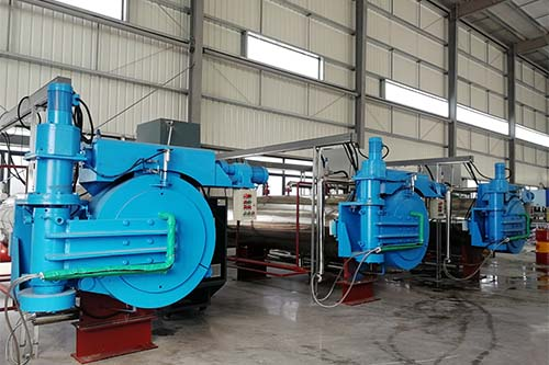 目前為什么比較常見的是氮?dú)獍l(fā)泡呢?是因為氮?dú)鈹U(kuò)散系數(shù)和空氣差不多,產(chǎn)品尺寸比較穩(wěn)定,不易收縮?,F(xiàn)在大部分板材發(fā)泡和鞋材發(fā)泡在緩震和回彈率等關(guān)鍵性能上已經(jīng)做到優(yōu)秀了,這不僅和制造工藝有關(guān)系,跟高壓氮?dú)獍l(fā)泡設(shè)備的技術(shù)也是密不可分的。簡單解密一下:先將交聯(lián)好的板材/片材/鞋材放在物料車上,推進(jìn)高壓釜內(nèi),關(guān)閉高壓釜門,往釜內(nèi)注入超臨界氮?dú)猓獌?nèi)加熱,加壓,使超臨界流體達(dá)到預(yù)設(shè)的溫度和壓力,高壓流體不斷擴(kuò)散至聚合物基體中直至達(dá)到溶解平衡,然后根據(jù)工藝條件再進(jìn)行相應(yīng)時間的保溫保壓,快速泄壓得到所需的發(fā)泡制品。